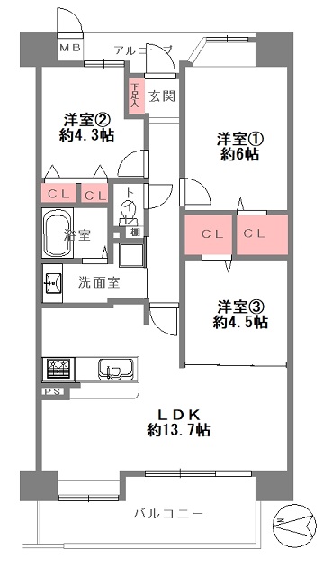 バルコニー面積   8.73㎡(西向き) 引き渡し時期  即時