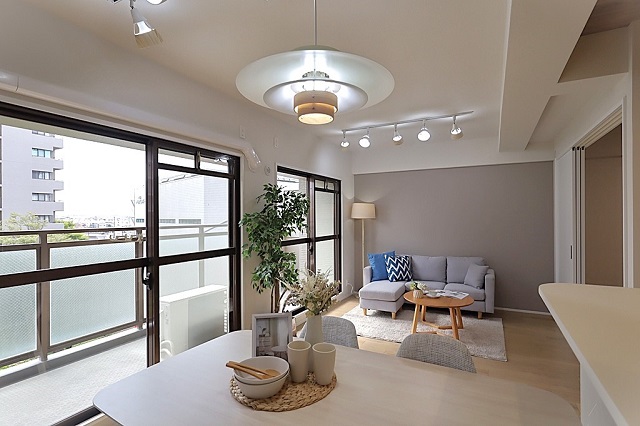 2025年9月リフォーム済 システムキッチン新調、浴室ユニットバス新調、洗面化粧台新調、便器・温水洗浄便座新調、カメラ付インターフォン新調、クロス張替え、フローリング張替、レースカーテン、照明器具付