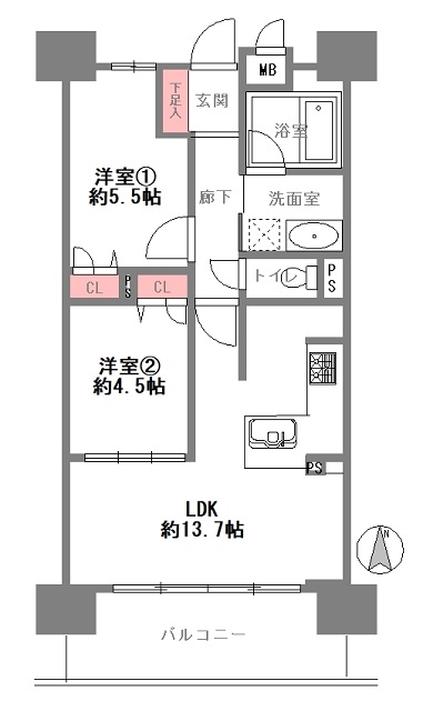 | 間取り | 2LDK | 敷地の権利形態 | 所有権 |